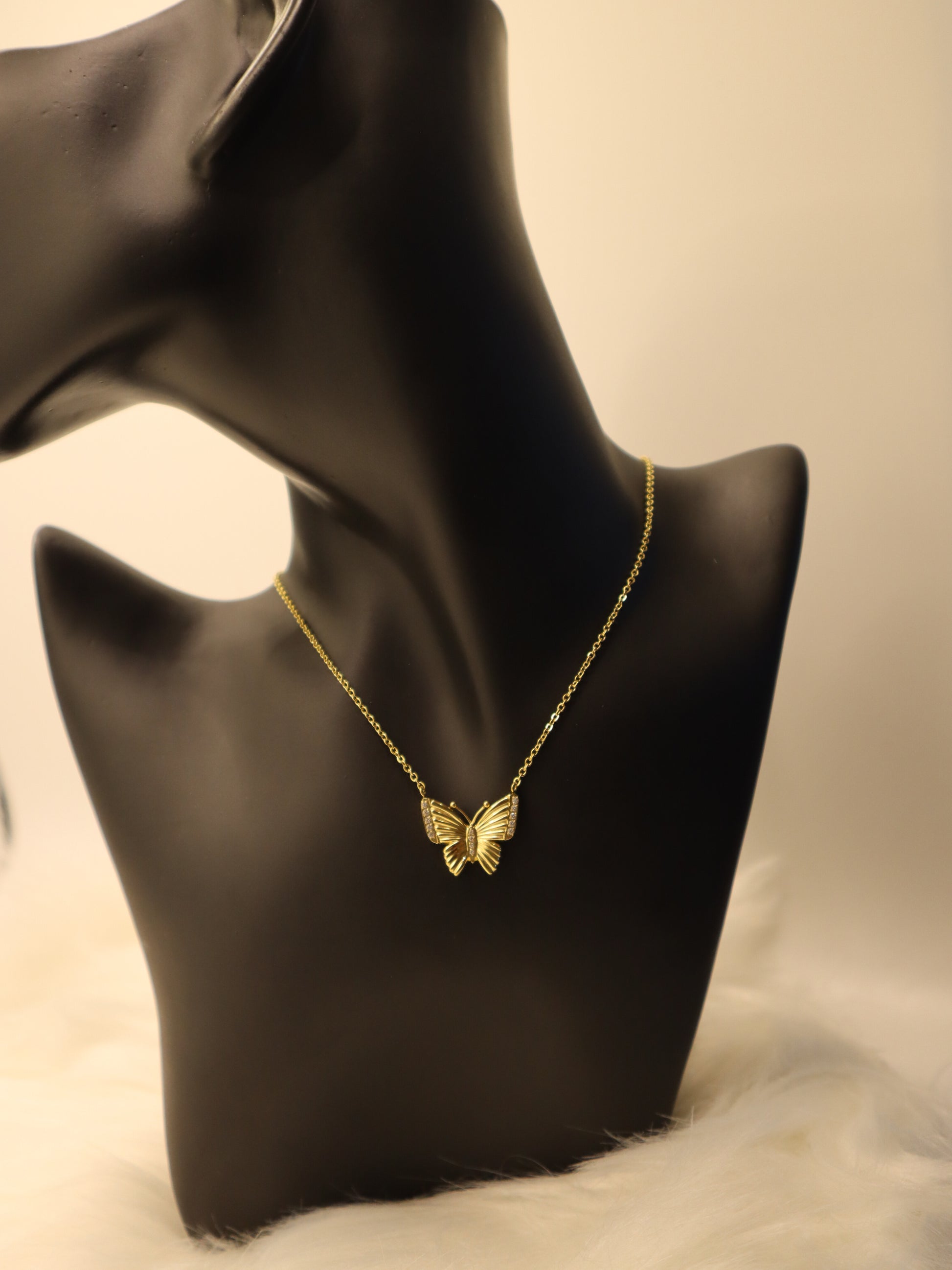 The Aurelia Butterfly Necklace captures the beauty of transformation with its golden wings and delicate crystal accents. A radiant symbol of growth, freedom, and inner strength made to shine wherever you go.