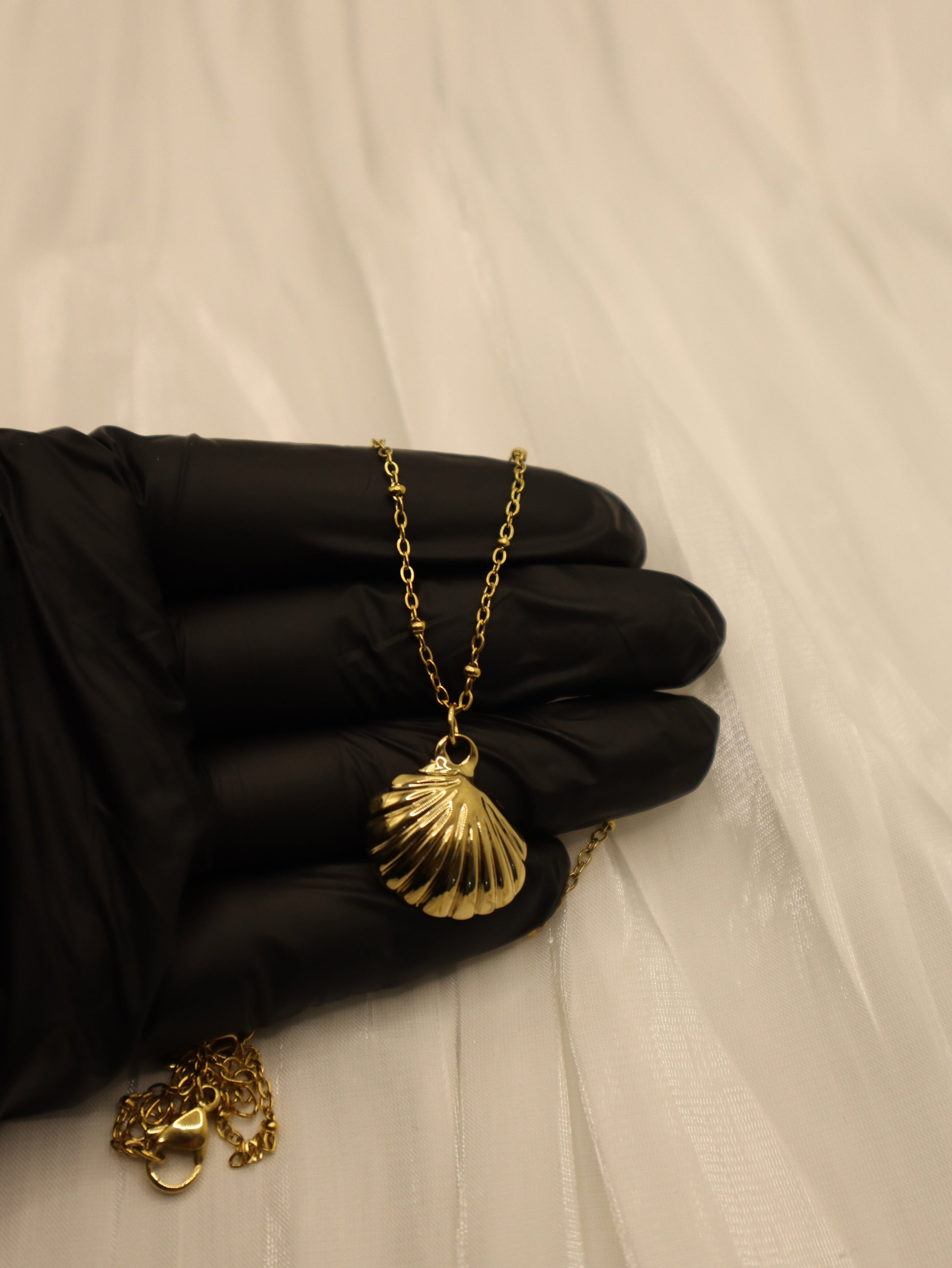 Golden and Serene, the Cora Necklace features a sculpted shell pendant on a fine chain. Inspired by the treasures of the sea, it’s a keepsake of sunlit shores, quiet tides, and the beauty found in nature’s smallest details.