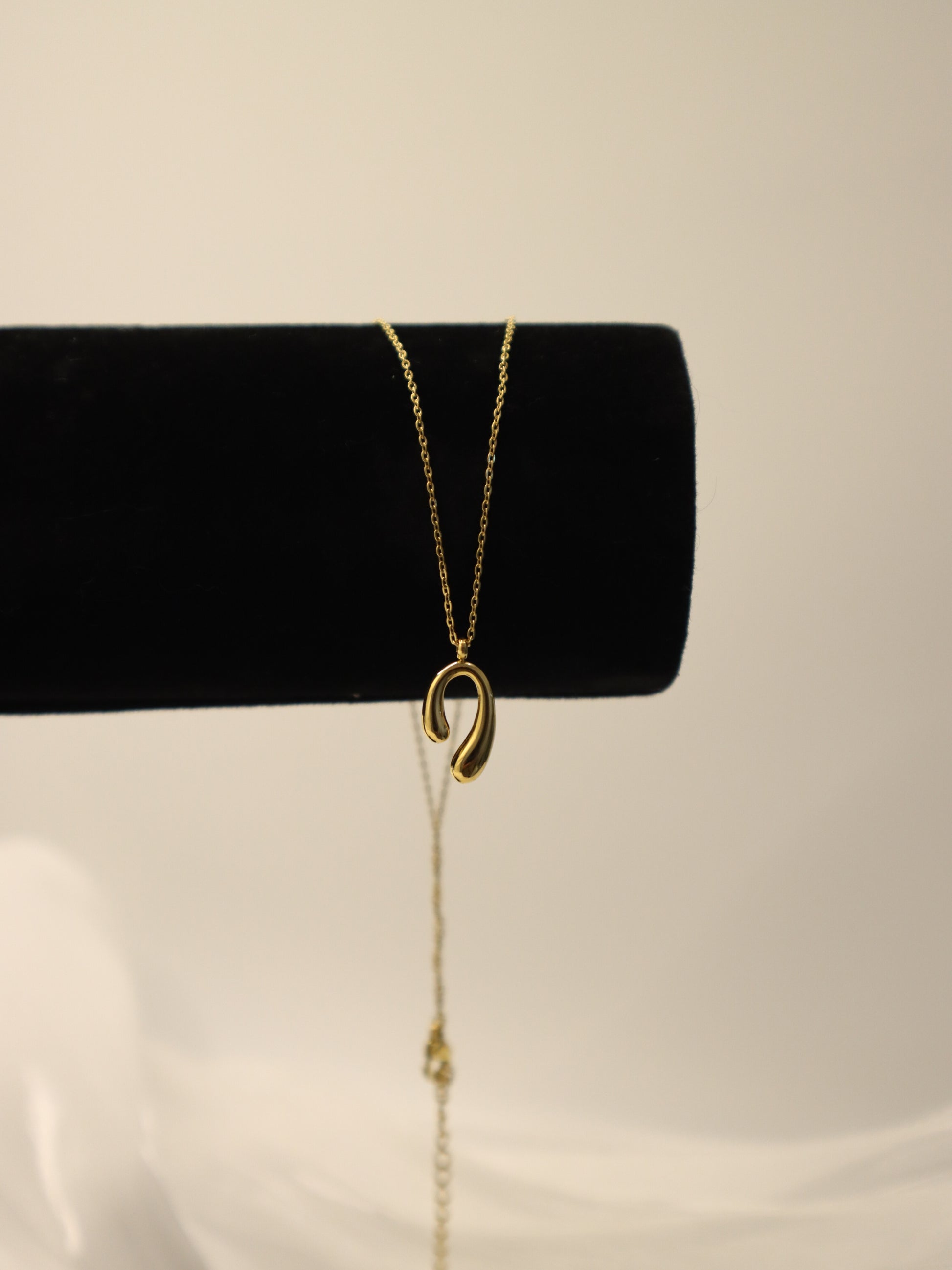 Bold in form and fluid in design, the Luna Loop Pendant brings modern minimalism to life. With its sculptural shape and radiant gold finish, this piece adds quiet confidence to any look.
