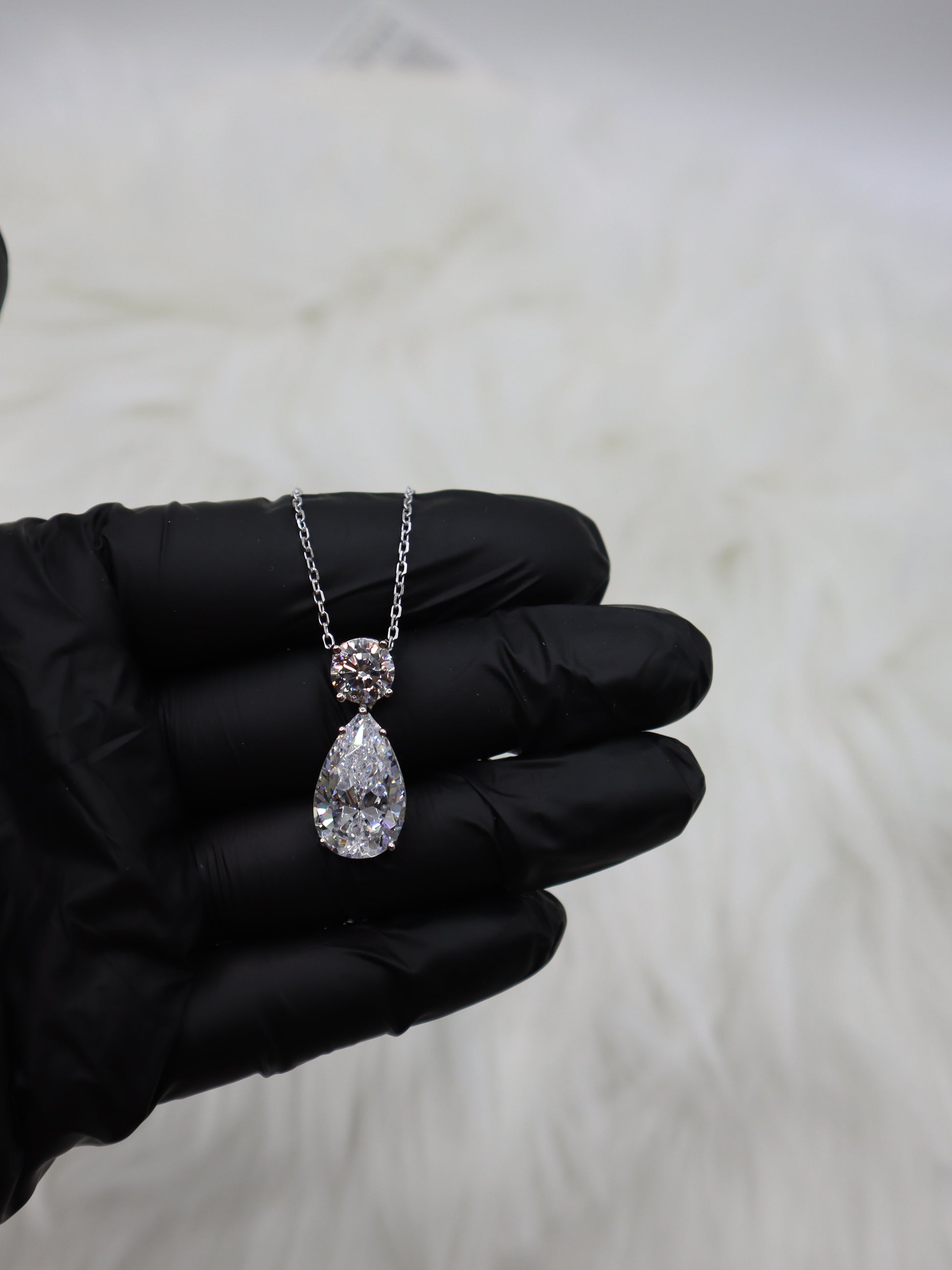 The tear of Light - Elegantly timeless, the Tear of Light Pendant captures the beauty of clarity and grace. Featuring a brilliant round stone above a luminous 5 ct teardrop gem, this necklace reflects light and strength from every angle. A classic piece for moments that matter.